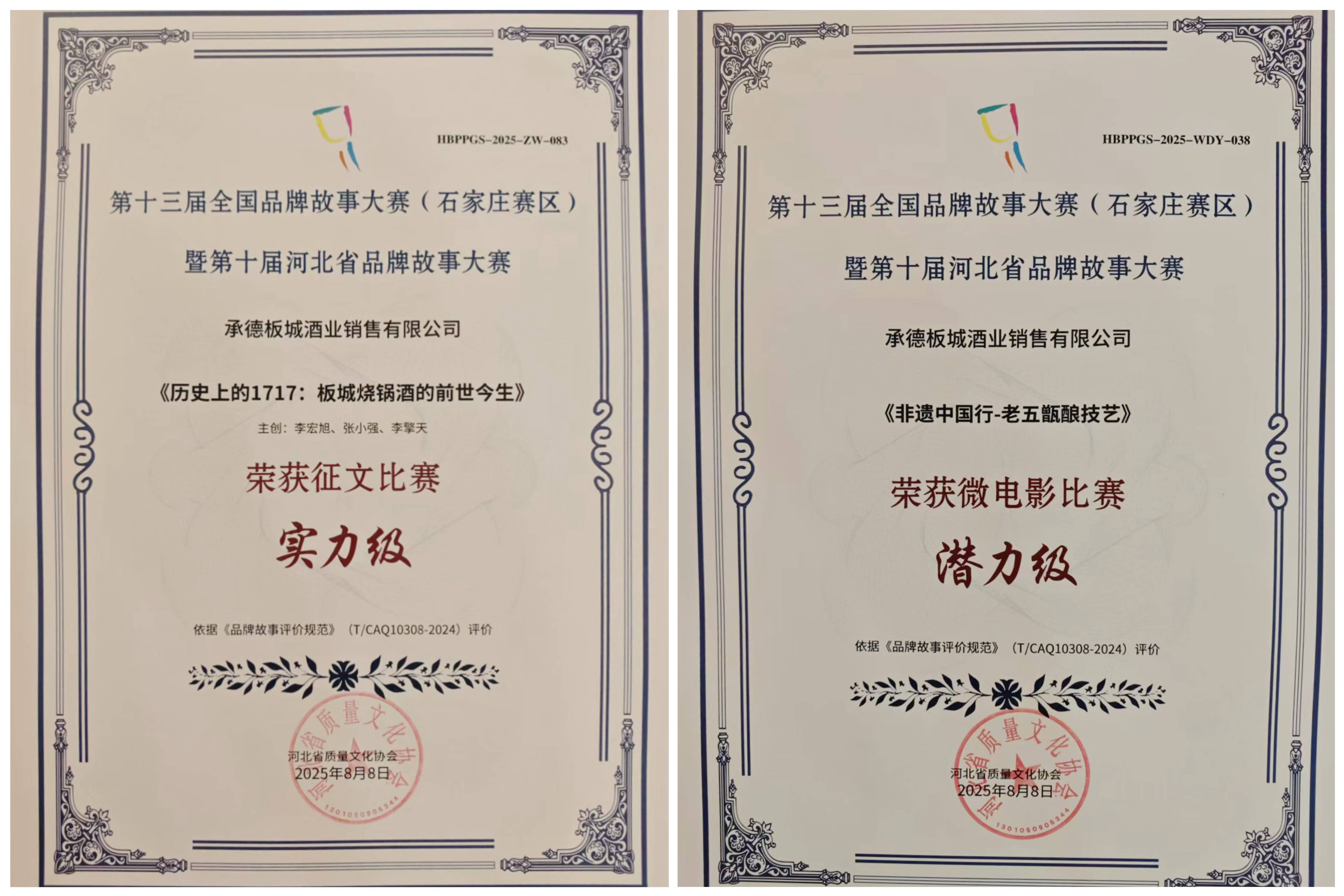 板城酒業(yè)憑借深厚的歷史底蘊(yùn)與創(chuàng)新的文化表達(dá),一舉斬獲雙項大獎——《歷史上的1717:板城燒鍋酒的前世今生》榮獲征文比賽實力級獎項,《非遺中國行——老五甑釀造技藝》榮獲微電影比賽潛力級獎項!這不僅是對板城酒業(yè)品牌敘事能力的肯定,更是對“老五甑”非遺技藝與三百年匠心傳承的高度贊譽(yù)。